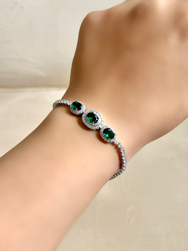 دستبند جواهری دخترانه نگین طرح زمرد سبز